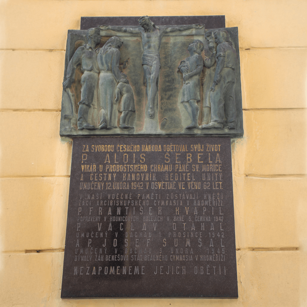 Pamětní deska na Stojanově náměstí připomíná kněze, kteří obětovali svůj život za svobodu českého národa během druhé světové války. Mezi nimi je P. Alois Šebela, vikář a čestný kanovník, umučený v Osvětimi v roce 1942, dále P. František Kvapil, popravený v Kounicových kolejích, a P. Václav Otáhal, který zemřel v koncentračním táboře Dachau.