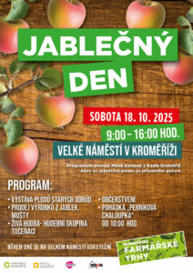 V sobotu 18. října 2025 se kroměřížské Velké náměstí promění v ráj všech milovníků jablek a podzimní pohody. Tradiční Jablečný den nabídne od 9 do 16 hodin program pro celou rodinu – a to v případě příznivého počasí.
