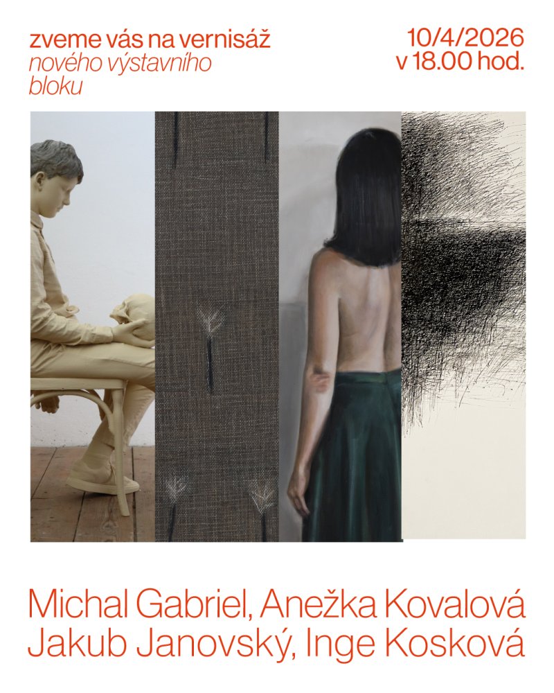 Nový výstavní cyklus nabídne jak komorní malby a kresby Anežky Kovalové a Inge Koskové, tak i monumentální sochy Michala Gabriela a rozměrná plátna kombinovaná s objekty od Jakuba Janovského.