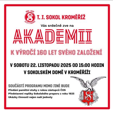 Srdečně Vás zveme do Sokolského domu v Kroměříži na Akademii k výročí 160 let svého založení.