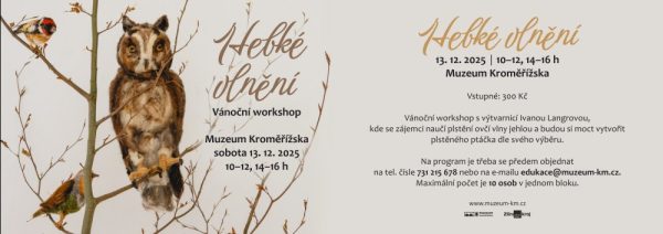 Vánoční workshop s výtvarnicí Ivanou Langrovou, kde se zájemci naučí plstění ovčí vlny jehlou a budou si moct vytvořit plstěného ptáčka dle svého výběru.