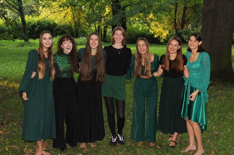Eliška Mořkovská- housle, Stella Zatloukalová- zpěv, Linda Tomišová- whistle, Míša Peťková- klávesy, Adéla Vaculíková- kytara, Anna Skřečková- basa a Klára Zatloukalová- bicí.
