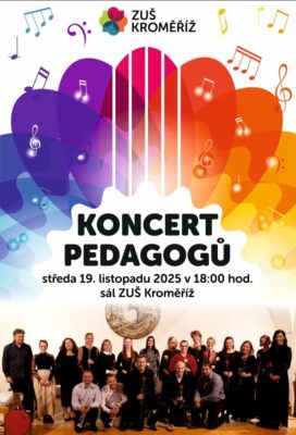 Zveme všechny milovníky hudby na tradiční koncert pedagogů Základní umělecké školy Kroměříž, který se uskuteční ve středu 19. listopadu 2025 v 18:00 v sále ZUŠ Kroměříž.